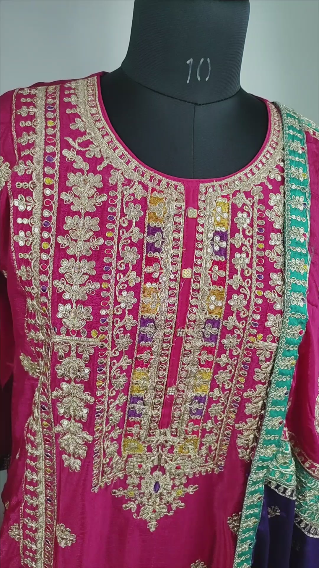 Expertly crafted with delicate embroidery, this Pink Chinon Party Wear Suit is sure to make a statement at any party or work event. Made with high-quality material, it offers both style and comfort for a professional and polished look. Elevate your wardrobe with this elegant and versatile suit.